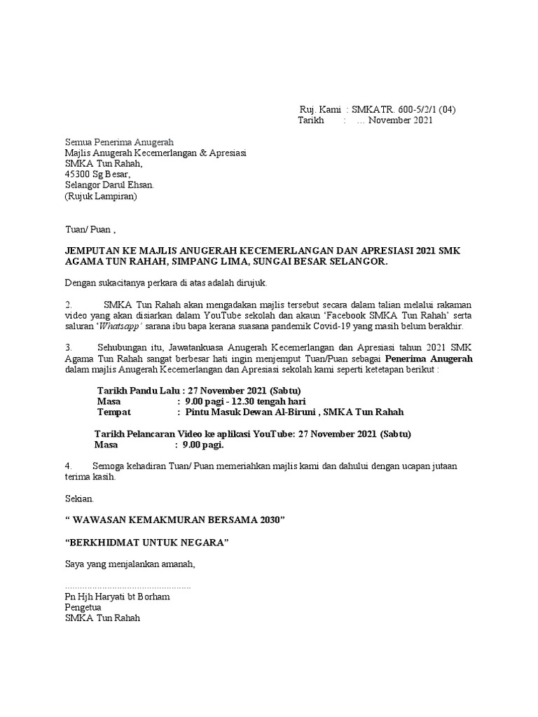 Surat Jemputan Penerima Anugerah Maka 2021 Pdf